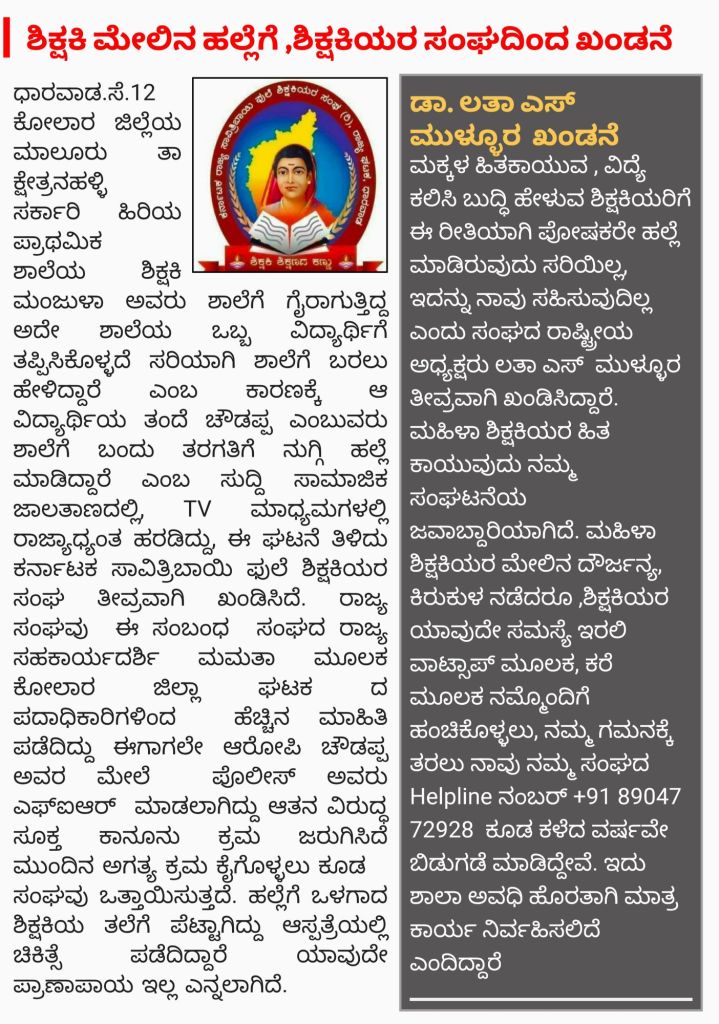 ಕರ್ನಾಟಕ ಸಾವಿತ್ರಿ ಬಾಯಿ ಫುಲೆ ಶಿಕ್ಷಕಿಯರ ಸಂಘದ ಜಿಲ್ಲಾ ಅಧ್ಯಕ್ಷರಾದ ಶ್ರೀಮತಿ ರಾಧಮ್ಮ ನವರು ನಮ್ಮ ಸಂಘ ಕೇವಲ ಸಂಘ ಅಲ್ಲ ಅದು ಒಂದು ಶಕ್ತಿ. ಇಂದು ರಾಷ್ಟ್ರದಾದ್ಯಂತ ನಮ್ಮ ಸಂಘಟನೆ ವ್ಯಾಪಿಸಿದೆ. ಸಂಘದ ಸಂಸ್ಥಾಪಕ ರಾಜ್ಯಾಧ್ಯಕ್ಷರು ಮತ್ತು ನಮ್ಮೆಲ್ಲರ ಹೆಮ್ಮೆಯ ಧೀಮಂತ ನಾಯಕಿ ಡಾ.ಲತಾ ಎಸ್ ಮುಳ್ಳೂರ ರವರ ದಿಟ್ಟ ನಾಯಕತ್ವವೇ ಇದಕೆಲ್ಲ ಮೂಲ ಕಾರಣ ಎಂದು ತಿಳಿಸಿದರು.