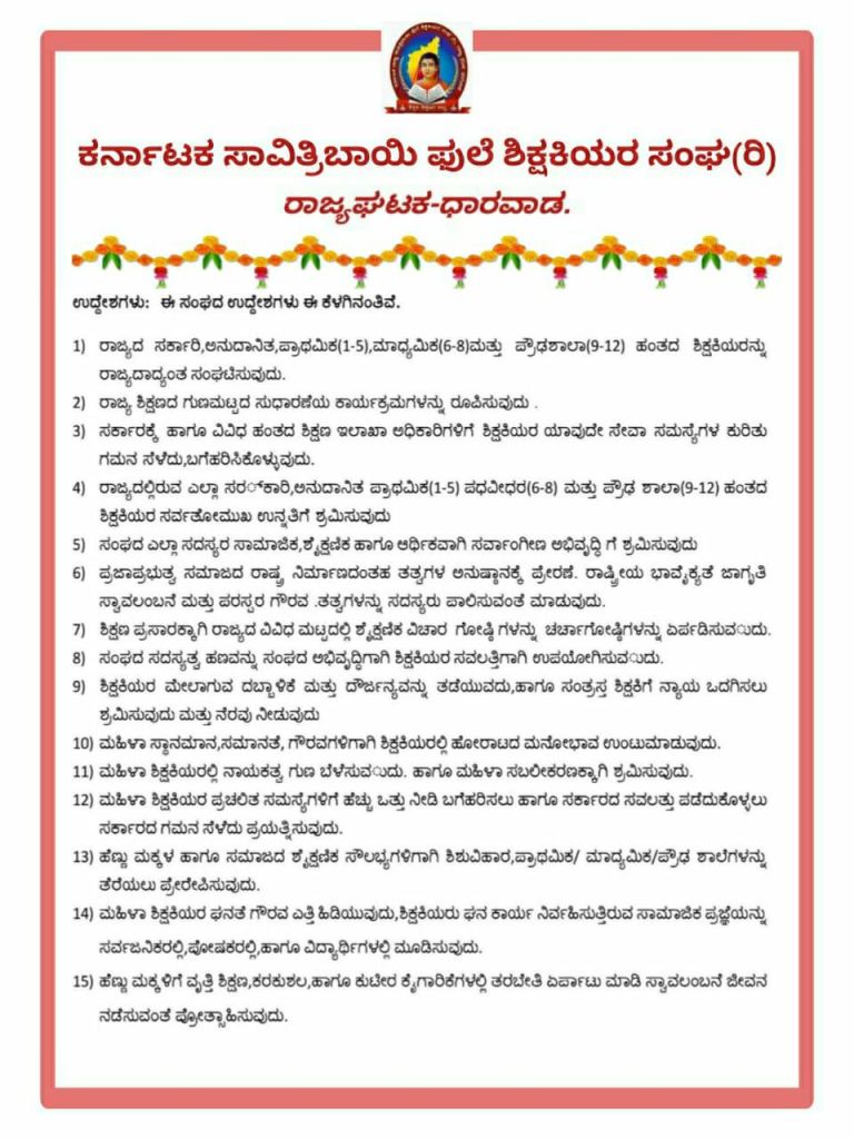 ಕರ್ನಾಟಕ ಸಾವಿತ್ರಿಬಾಯಿ ಫುಲೆ ಶಿಕ್ಷಕಿಯರ ಸಂಘ(ರಿ.) ರಾಜ್ಯಘಟಕ-ಧಾರವಾಡ.
