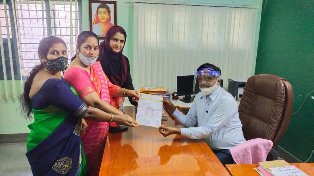 ಶಿವಮೊಗ್ಗ ಮೇ.28 ಕರ್ನಾಟಕ ರಾಜ್ಯ ಸಾವಿತ್ರಿಬಾಯಿ ಫುಲೆ ಶಿಕ್ಷಕಿಯರ ಸಂಘ(ರಿ) ರಾಜ್ಯಘಟಕ- ಧಾರವಾಡ. ಶಿವಮೊಗ್ಗ ಘಟಕದ ವತಿಯಿಂದ ಕೊವಿಡ್ ಕರ್ತವ್ಯ ನಿರ್ವಹಿಸುತ್ತಿರುವ ವಾರಿಯರ್ ಶಿಕ್ಷಕರಿಗಷ್ಟೆ ಅಲ್ಲದೇ ಪ್ರತೀ ಶಿಕ್ಷಕರುಗಳಿಗೂ ಕೊವಿಡ್ ಲಸಿಕೆ ಹಾಕಿಸಲು ಕೋರಿ ಇಂದು ಶಿವಮೊಗ್ಗ ಕ್ಷೇತ್ರ ಶಿಕ್ಷಣಾಧಿಕಾರಿಗಳಿಗೆ ಮನವಿ ಸಲ್ಲಿಸಲಾಯಿತು. ಮನವಿಗೆ ಕ್ಷೇತ್ರ ಶಿಕ್ಷಣಾಧಿಕಾರಿಗಳಾದ ಮಾನ್ಯ ನಾಗರಾಜ್ ಪಿ.ರವರು ಸಕಾರಾತ್ಮಕವಾಗಿ ಸ್ಪಂದಿಸಿರುತ್ತಾರೆ ಎಂದು ಶಿವಮೊಗ್ಗ ಜಿಲ್ಲಾಧ್ಯಕ್ಷರಾದ ಶ್ರೀಮತಿ ರಾಧಾ ರವರು ತಿಳಿಸಿದ್ದಾರೆ. ಉಪಾಧ್ಯಕ್ಷರಾದ ಶ್ರೀಮತಿ ಅನಿತ ಕೃಷ್ಣ, ತಾಲ್ಲೂಕು ಅಧ್ಯಕ್ಷರಾದ ಶ್ರೀಮತಿ ಶಾಯಿನ್ ಬಾನು ಹಾಗು ಇತರರು ಈ ಸಂದರ್ಭದಲ್ಲಿ ಹಾಜರಿದ್ದರು.